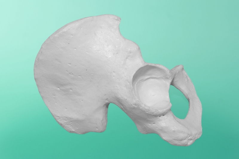 Kość miedniczna prawa z panewką stawową o średnicy 49 mm, wykonana w wersji materiałowej C przeznaczona między innymi do prowadzenia szkoleń z wymiany stawu biodrowego.