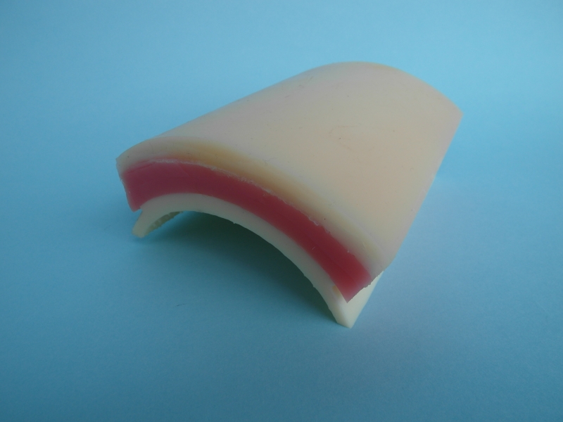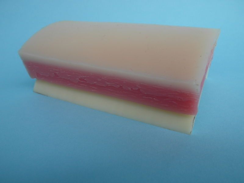 Model do nauki zakładania szwów oraz węzłów chirurgicznych. Zestaw przeznaczony jest do treningu technik nacinania i szycia chirurgicznego skóry. Fantom wykonany jest z miękkiej elastycznej warstwy skórnej nałożonej na rdzeń z imitacji tanki tłuszczowej i mięśniowej. Zapewnia realistyczne wrażenia zakładania szwów. Model posiada charakterystyczną strukturę skóry z widocznymi porami i pomarszczeniami. Miękki i podatny materiał gwarantuje, że szwy nie zostaną zerwane przy próbie naciśnięcia miejsca rany. Model można zszywać wielokrotnie. Po widocznym zużyciu skóry w miejscach zakładania szwów, można wykonać na modelu kolejne nacięcia w innych miejscach i prowadzać dalsze ćwiczenia. Wymiary modelu 140 mm x 100 mm x 60 mm. Numer katalogowy: 00-5000.